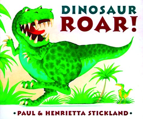 Dinosaurs are the gimmick here, not really the subject. The subjects are, first, antonyms--such as above/below and weak/strong--and then lunch. The paired dinosaurs, in a goofy array of pastels, are almost all smiling, even when the rhyme insists they're "grumpy"--so when they settle down to a lunch with (and not of) each other, the end is satisfying. The pictures and swingy short verses will make this a good group read-aloud, even for the very young.